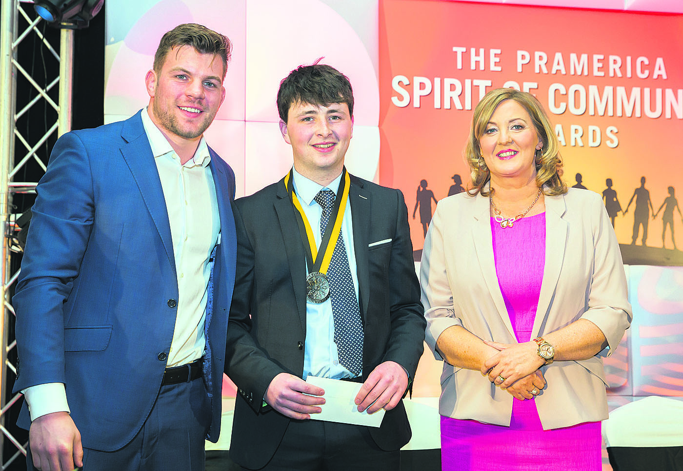 In recognition of the exemplary work he carries out in his local community, Patrician Academy student Eoghan Kenny was honoured at the 2017 Pramerica Spirit of Community Awards gala awards’ ceremony, held at the Crowne Plaza Hotel Dublin last weekend. As a 2017 finalist, Eoghan was selected for the honour from amongst hundreds of youth volunteers from across the island of Ireland and received €500 and a silver medallion, presented by Irish international rugby player Jordi Murphy. Eoghan, a fourth year student at the Patrician Academy, was motivated to give back to his community following a devastating fire at his school. He is dedicated to volunteering in order to positively impact his community and does this any way he can. His volunteering activities can’t be limited to one organisation or group of people. He helps out at his local church and gives time to read at Mass, and is a member of the Mallow Parish Pastoral Council. He led his school council in organising Christmas food hampers for local charities and gave his time to help at a Christmas party for the elderly in his area. Eoghan also trains the local under 11 hurling and football teams for two hours twice a week, and is also volunteering with the organisation team behind the Munster Maths and Science Fair.