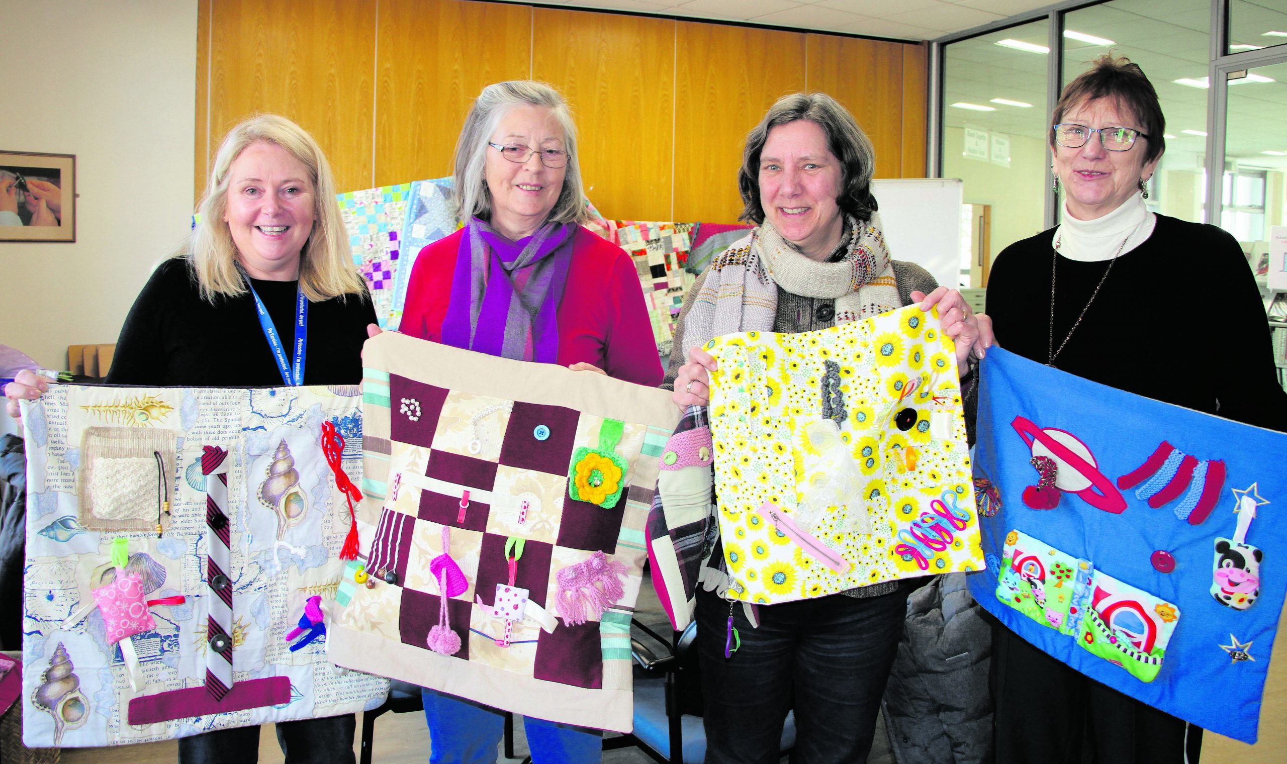 The Crystal Project is very grateful to be presented with fiddle cushions, created by the Mallow Library Quilters. These cushions can be beneficial for people in the later stages of dementia who may be feeling agitated. Such cushions may help alleviate stress and restlessness along with being a source of comfort.